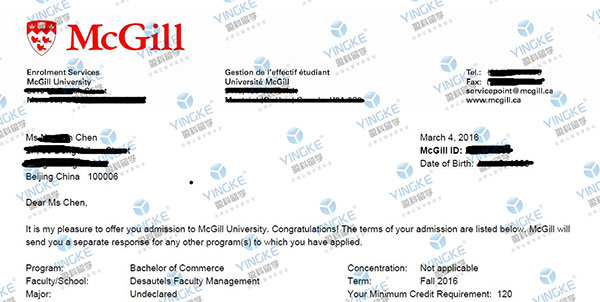 麥吉爾大學的OFFER 錄取截圖: