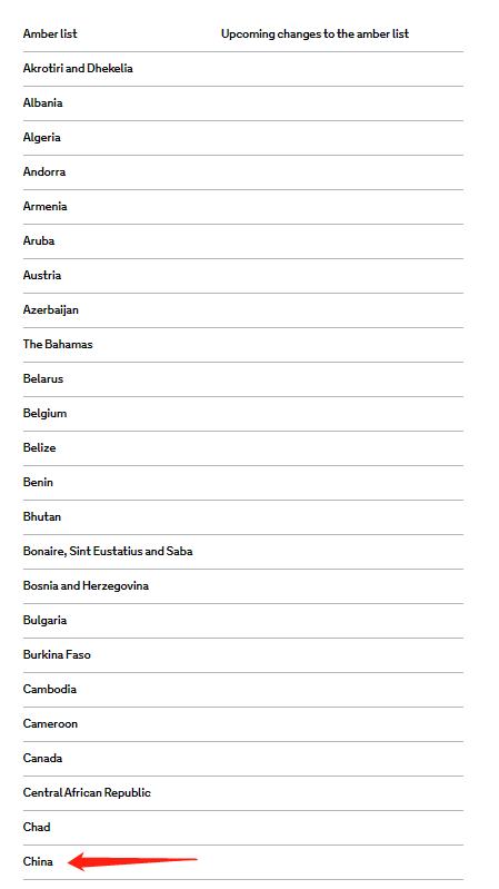此前,英國政府宣布:7月19日起完全解封,但是依舊按照Red, amber and green list rule來系統(tǒng)管控國際旅行。根據(jù)英國政府官網(wǎng)顯示,中國(包括港澳臺地區(qū))在Amber名單中。