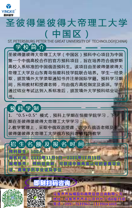 1. 該預(yù)科項目為圣彼得堡彼得大帝理工大學自主招生,預(yù)科結(jié)業(yè)后,無需參加國內(nèi)高考或碩士研究生國家統(tǒng)一考試;