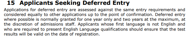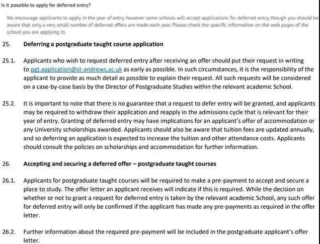 愛丁堡大學(xué)的延期申請(qǐng)也分學(xué)院,例如literature, languages and culture 學(xué)院一般不給延期,但商院小部分專業(yè)滿足 conditions 可以延期,要注意的愛丁堡21 fall 開始是不認(rèn)可PTE成績(jī)了的,延期直接跟學(xué)院郵件聯(lián)系即可。
