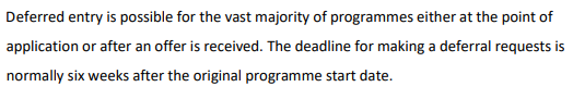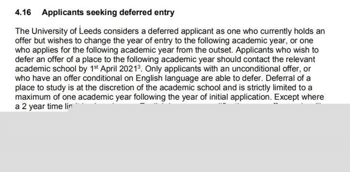 利茲大學(xué)基本都可以延期,聯(lián)系學(xué)校就好,針對(duì)是uncon和只con語(yǔ)言的offer可以defer,只允許延期一年。