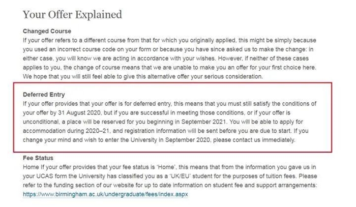 伯明翰大學(xué)大部分專業(yè)都可以延期,不過(guò)也有學(xué)生反饋商院的專業(yè)有些不能延期,具體可以郵件聯(lián)系學(xué)校。