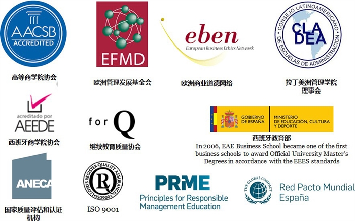 此外,EAE 商學(xué)院是最受人尊敬的國家和國際排名組織的成員,如:AACSB(高等商學(xué)院協(xié)會(huì))、EFMD(歐洲管理發(fā)展基金會(huì))、CLADEA(拉丁美洲管理學(xué)校理事會(huì))、EBEN(歐洲商業(yè)倫理網(wǎng))和 ANECA (西班牙國家質(zhì)量評(píng)估和認(rèn)證機(jī)構(gòu))。